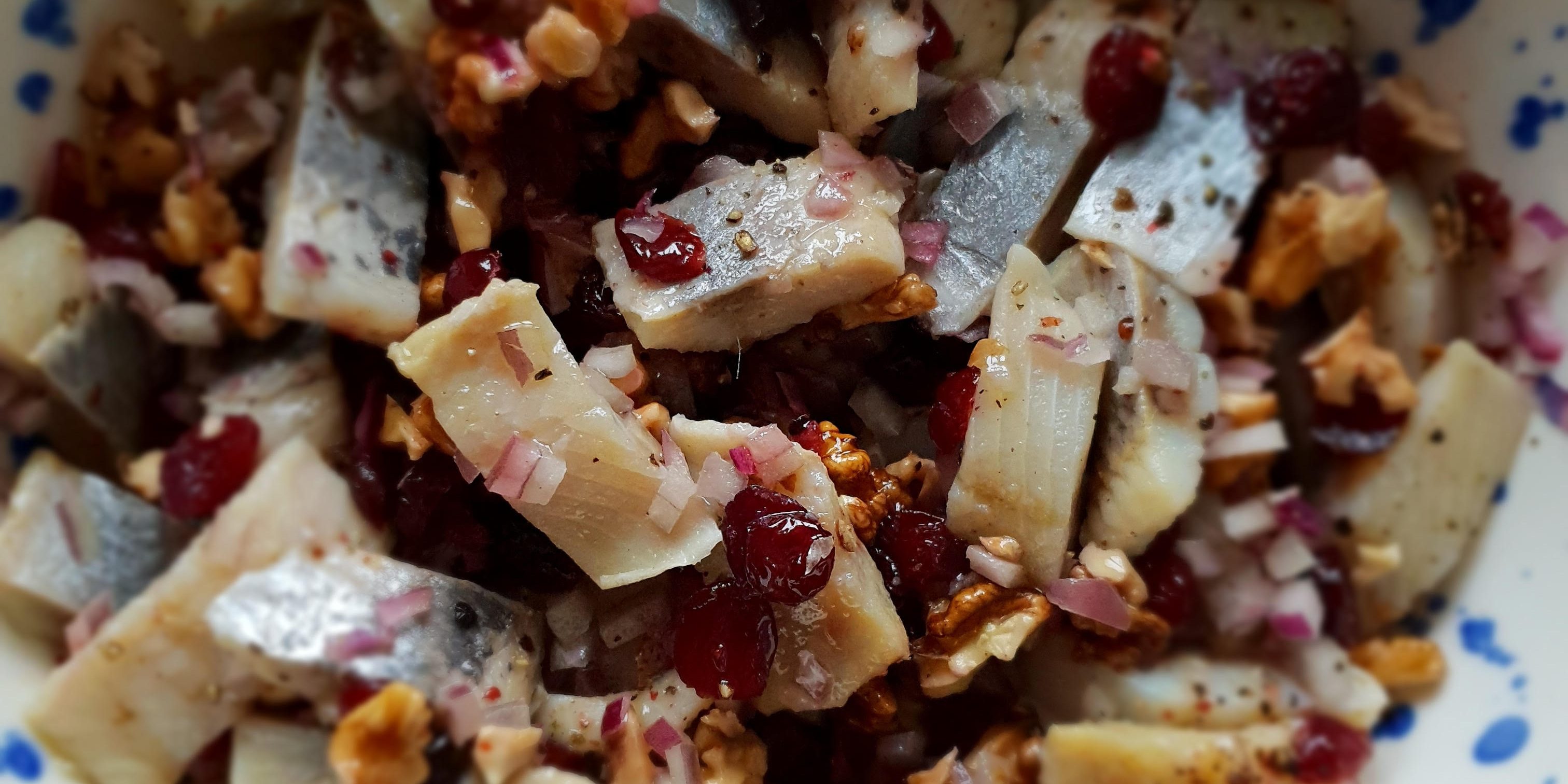 ŚWIĄTECZNE ŚLEDZIE Z ORZECHAMI WŁOSKIMI I ŻURAWINĄ